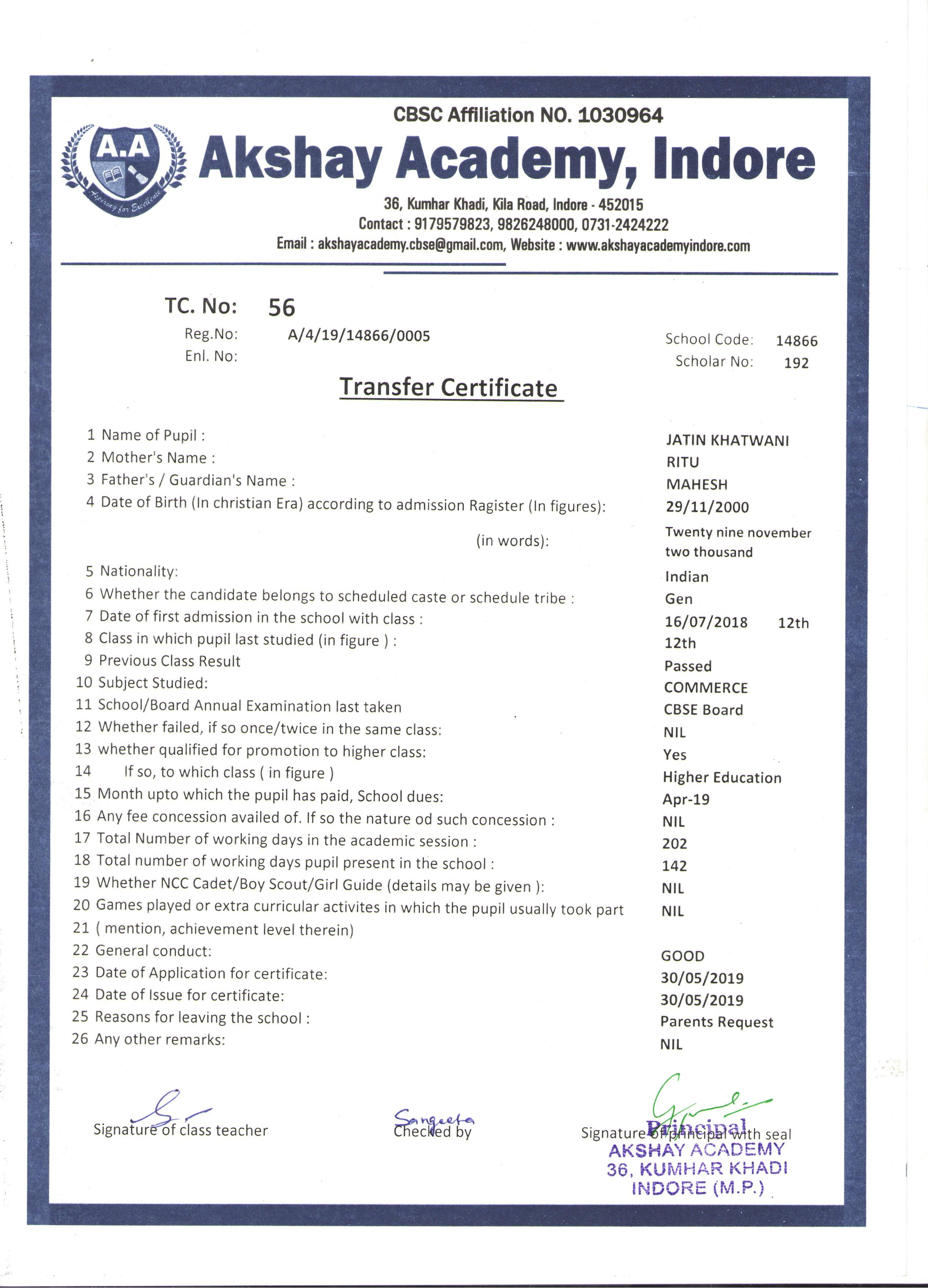 | 056 | JATIN KHATWANI | MAHESH | XII | 2018-19 | |