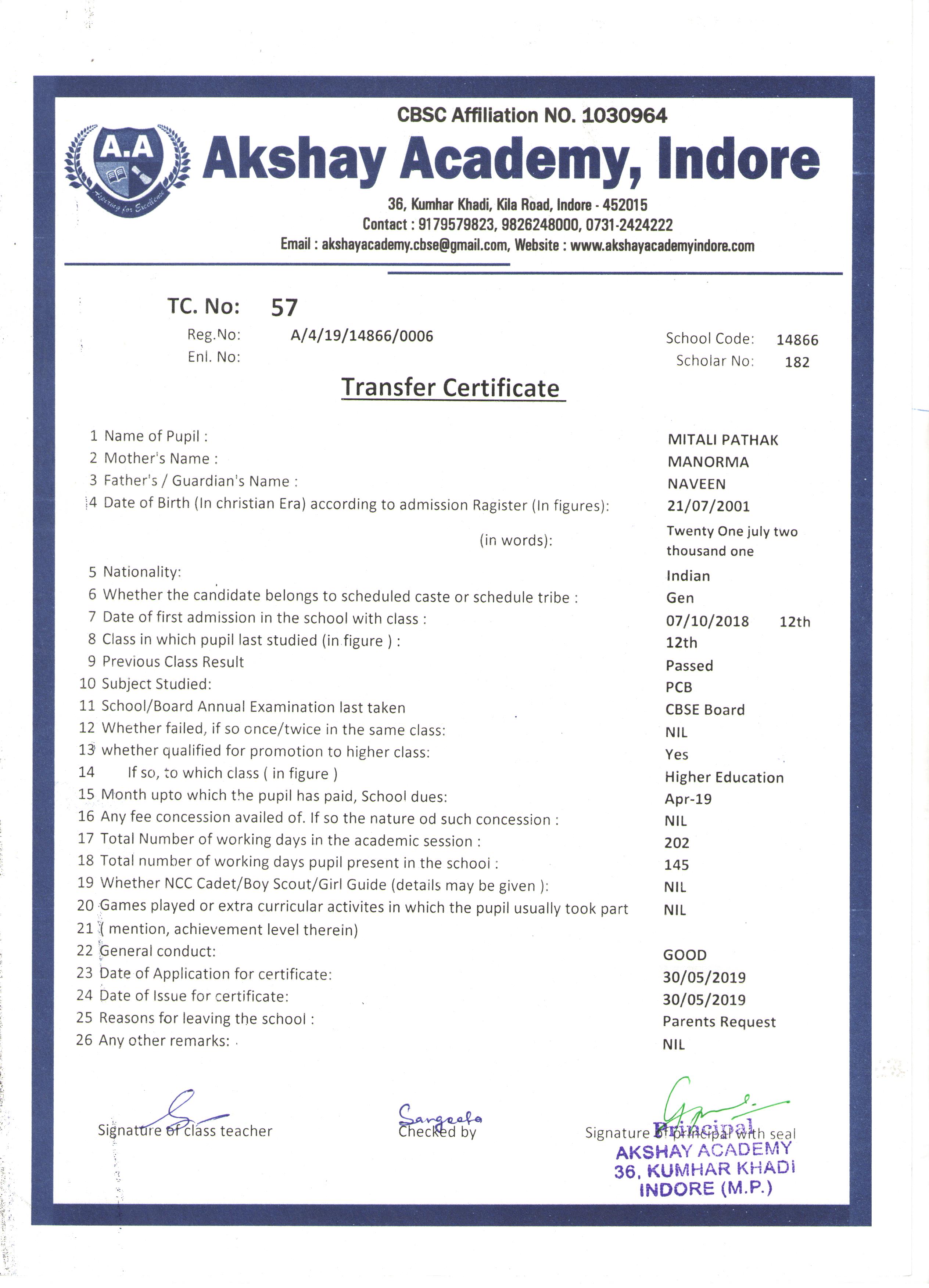 | 057 | MITALI PATHAK | NAVEEN | XII | 2018-19 | |