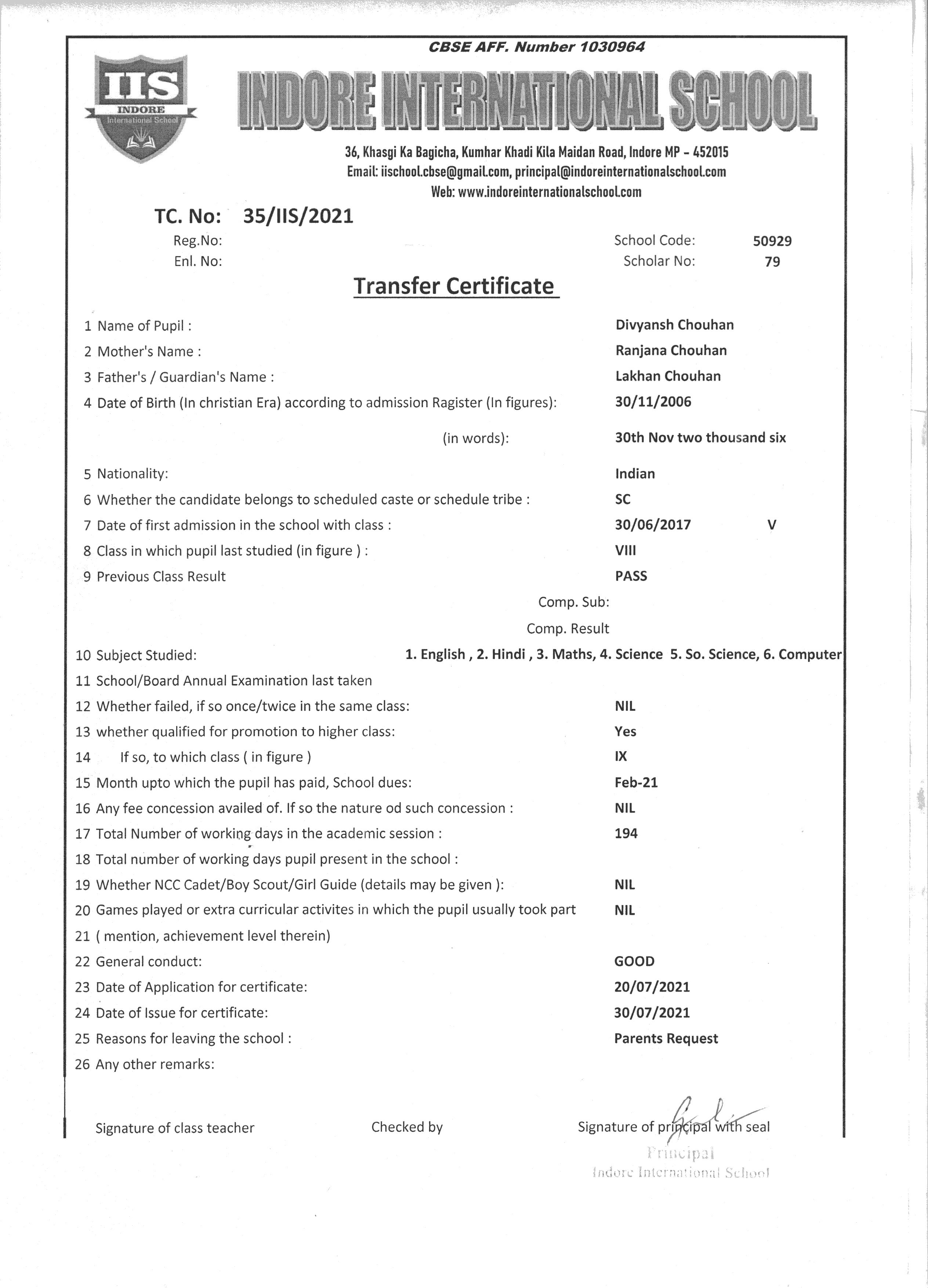 | 35/IIS/2021 | DIVYANSH CHOUHAN | LAKHAN CHOUHAN | VIII | 2020-21 | |