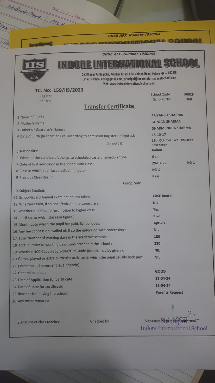 | 159-IIS-23 | PRIYANSH SHARMA | DHARMENDRA | KG-I | 2022-23 | |